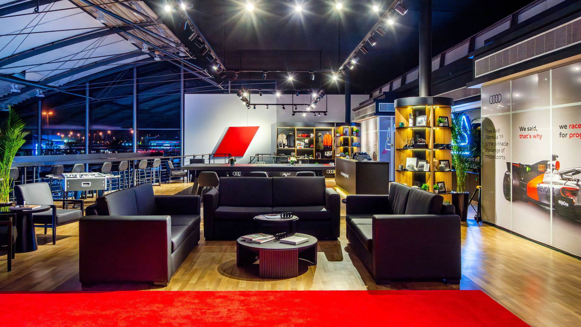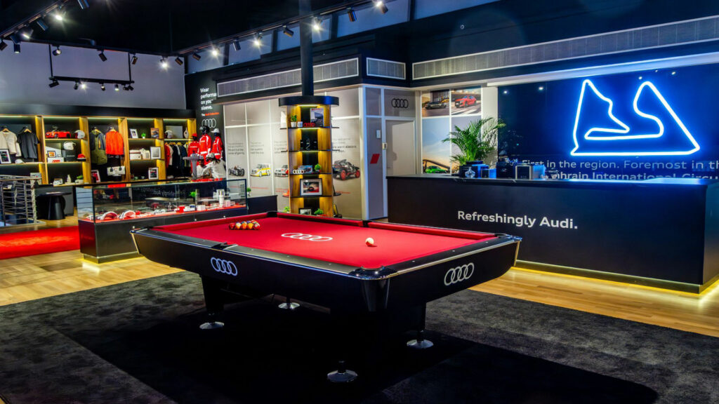 وقد صُمِّمَت صالة Audi Sport لتُلائم خصيصًا عطلات نهاية أسبوع السباقات. وفي ظل انتشار حلبات «فورمولا 1» في جميع أنحاء المنطقة، تحتل البحرين مكانةً فريدةً ضمن جدول رياضة السيارات في الشرق الأوسط، حيث تستضيفُ أول سباق من أصل أربعة سباقات «فورمولا 1» في المنطقة. وتُوفر الصالة نقطة التقاء طبيعية، وبيئةً تتيح للمشجعين متابعة مجريات الموسم، ومناقشة الاستراتيجيات، والاحتفال باعتلاء منصات التتويج، والانغماس في التراث الذي يرتكز عليه كل طراز من طرازات Audi Sport.