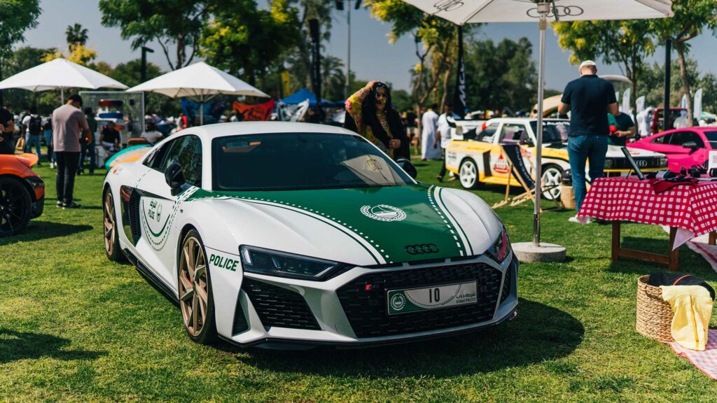 The Dubai Police Audi R8 added a recognisable regional icon to the mix, a 610 PS V10 performance car that has become part of the UAE’s automotive identity.