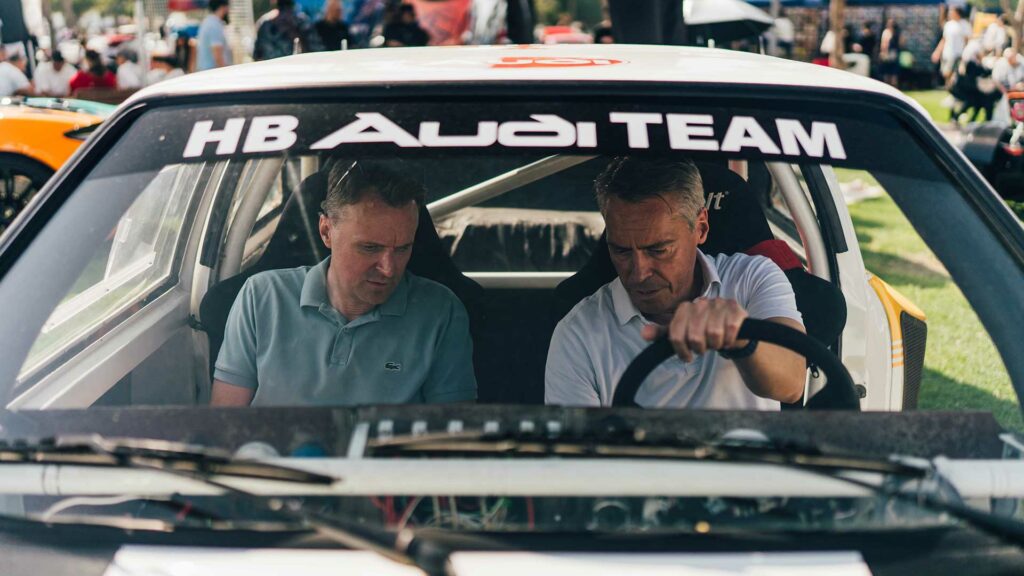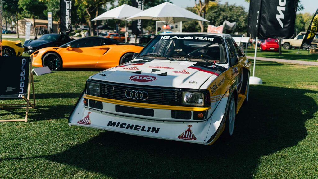 Heritage was represented through a rally-inspired quattro replica, referencing Audi’s World Rally Championship successes in the early 1980s, the era that established four-wheel drive as a competitive advantage and reshaped rallying.